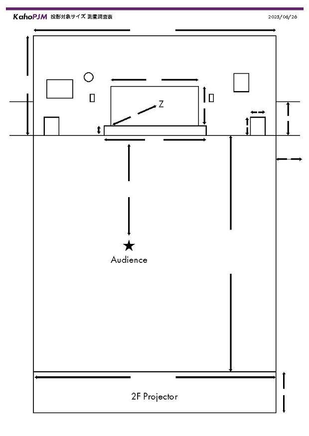 | レンズシフト | ELPLM15:垂直 ±60 %&水平 ±18 %(画面高さ/幅比) | 2F ギャラリー床 ≒ 4 m ⇒ ステージ中央 ≒ 4.2 m → ほぼ光軸同レベル、余裕あり |